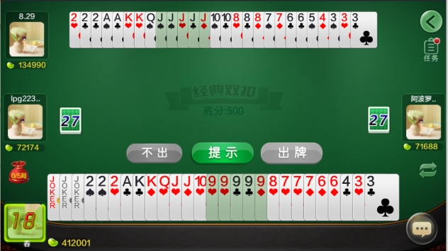 玩双扣的第二种精神就是全神贯注,全身投入,不知疲倦,始终处于充满激情和亢奋的状态。这时出完牌的会高度兴奋、左顾右盼,活似神仙,对家鼓足了劲,试图尽快出完牌,对手则要比学赶超、争先恐后,力争不被关在最后。哪怕到午夜凌晨,都决不会打磕睡,决不会觉得辛苦,决不会说白天工作好晚,晚上精力不充沛。